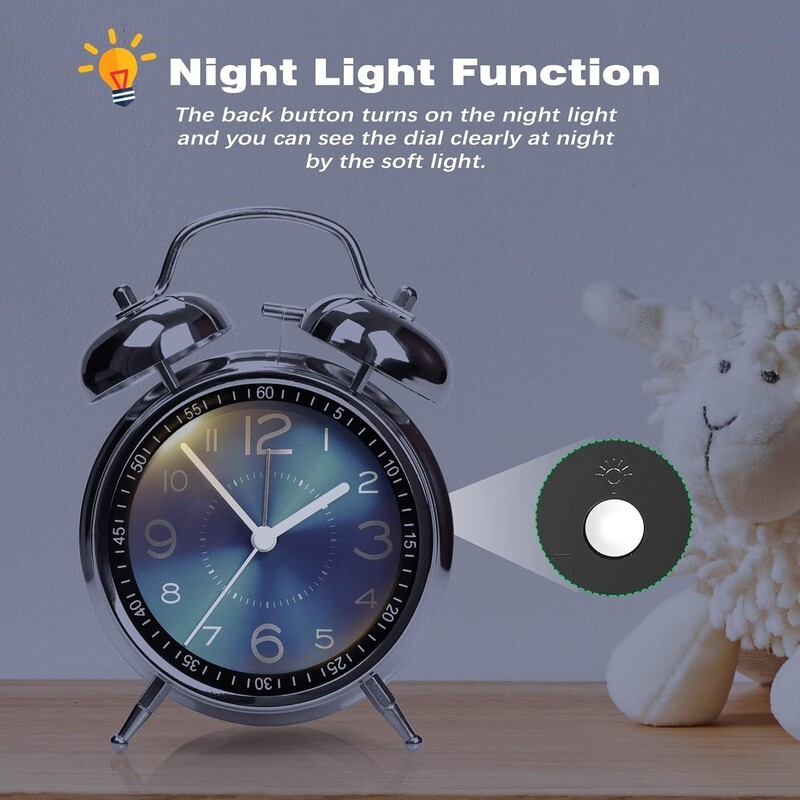 ?Silent Non Ticking?The sweep second hand moves without making any annoying noise, making it perfect for working and sleeping environments. Retro Chic Design: With its classic twin bell design and updated metal finish, our alarm clock is a timeless addition to any decor style.