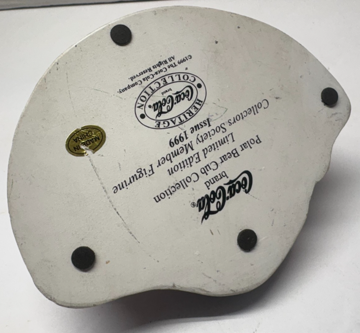 The Coca Cola Polar Bear Cub Collection 1999 features a multi-color figurine that is part of the original advertising collectibles from the 1990's-2000's. This special treat captures the theme of soda and the iconic Coca-Cola brand, making it a unique and cherished piece for collectors of Coca-Cola memorabilia. The polar bear design adds a touch of nostalgia and charm to any display, making it a sought-after item for fans of the classic soda brand. Pre-owned/used. No box. Has light wear. Approx 5" wide x 3" tall. All Polyresin.