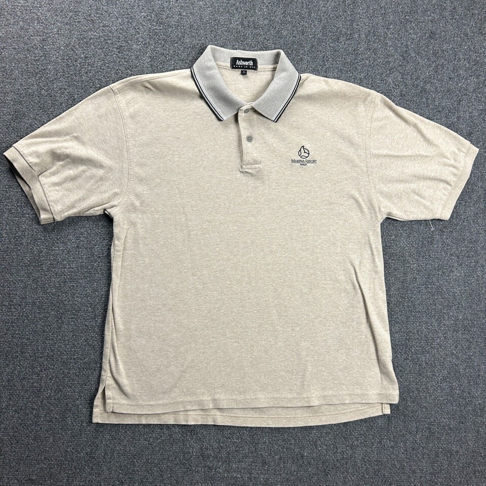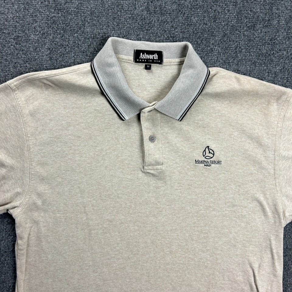 Vintage Makena Golf Resort Polo Shirt Mens Medium Ashworth Beige Maui Adults