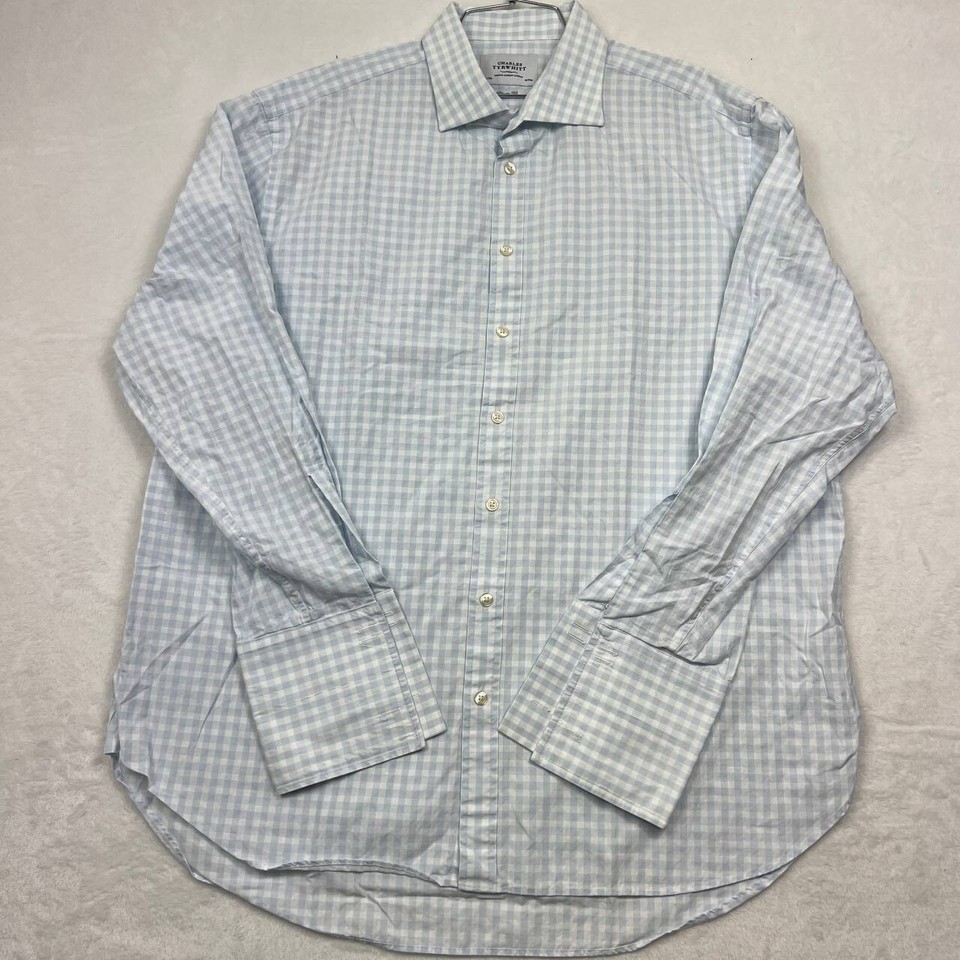 Charles Tyrwhitt Shirt Men 17.5 Blue Checkered Classic Fit Button Down XL