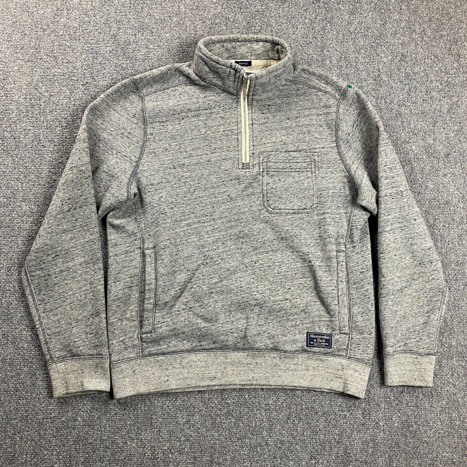Abercrombie & Fitch 1/4 Zip Pullover Mens Medium Gray Muscle Fit Sweatshirt