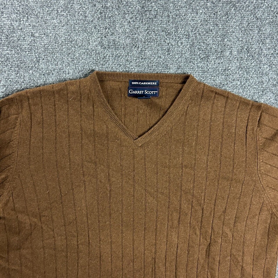 Garret Scott Sweater Mens Large Brown V-Neck Golf Casual Vintage 100% Cashmere