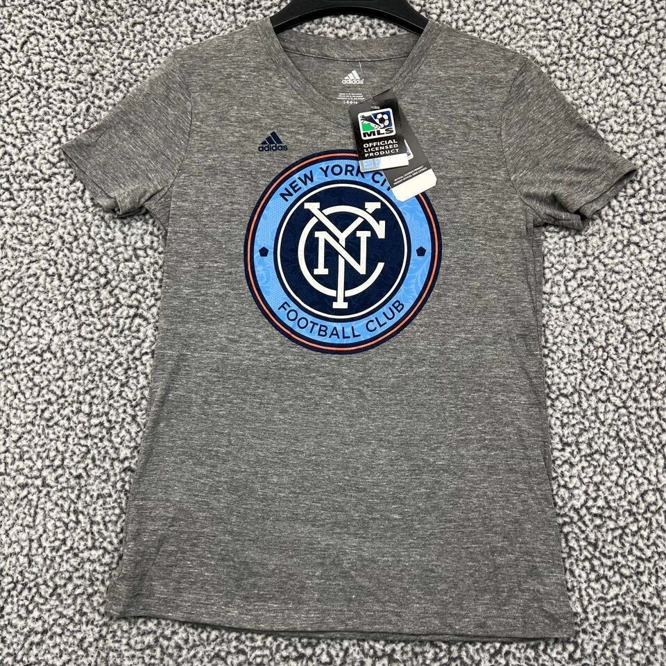 New York City FC Shirt Youth Large 14 Gray Adidas Short Sleeve Crew Neck New
