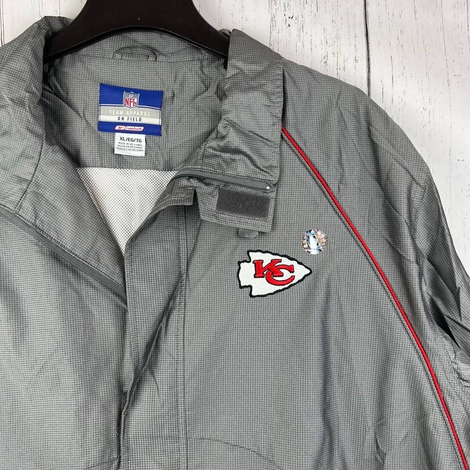 Vintage Kansas City Chiefs NFL XL Reebok Windbreaker Jacket Gray Men New