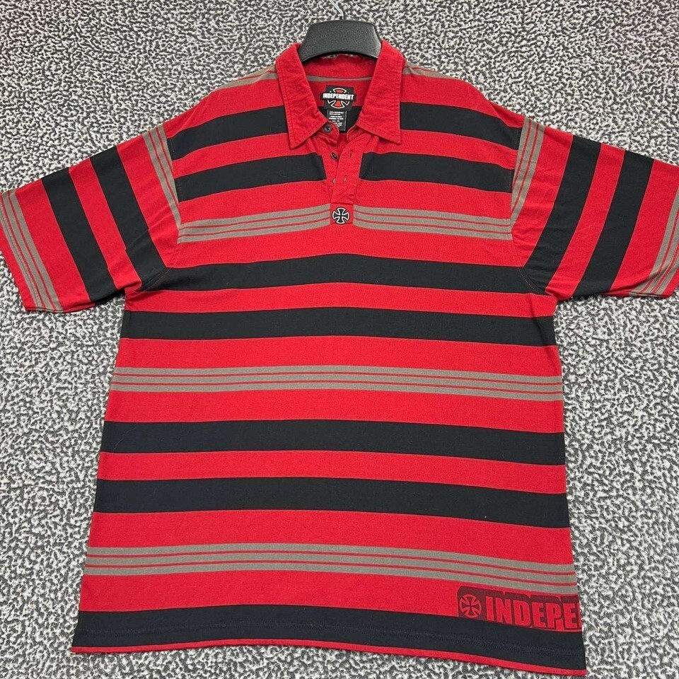 Independent Polo Shirt Men Extra Large Red Striped Short Sleeve Collared XL