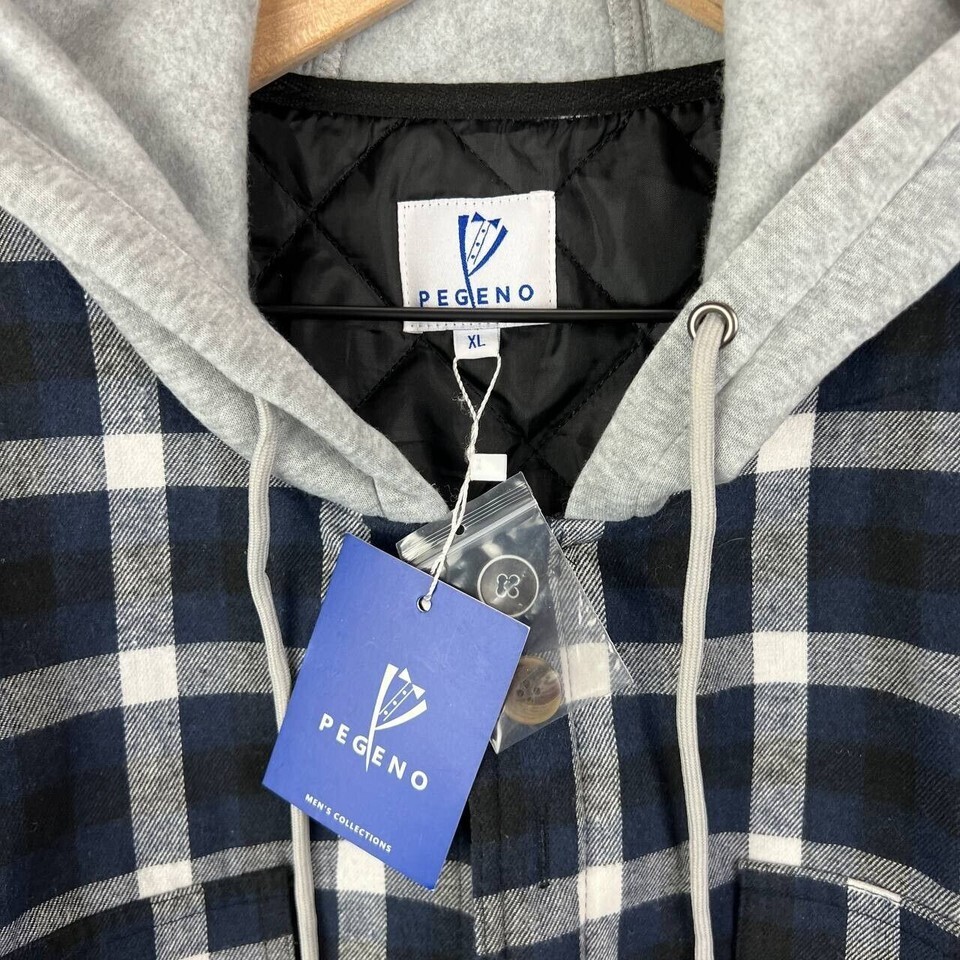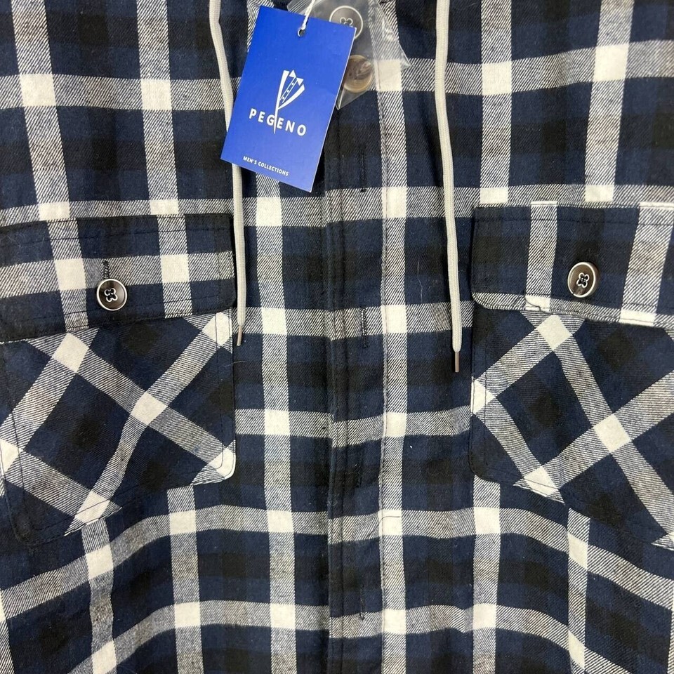 Pegeno XL Plaid Button Quilted Long Sleeve Flannel Jacket Hoodie New Men