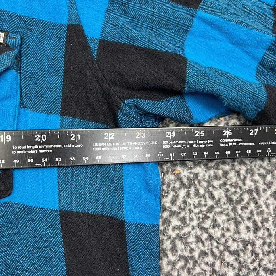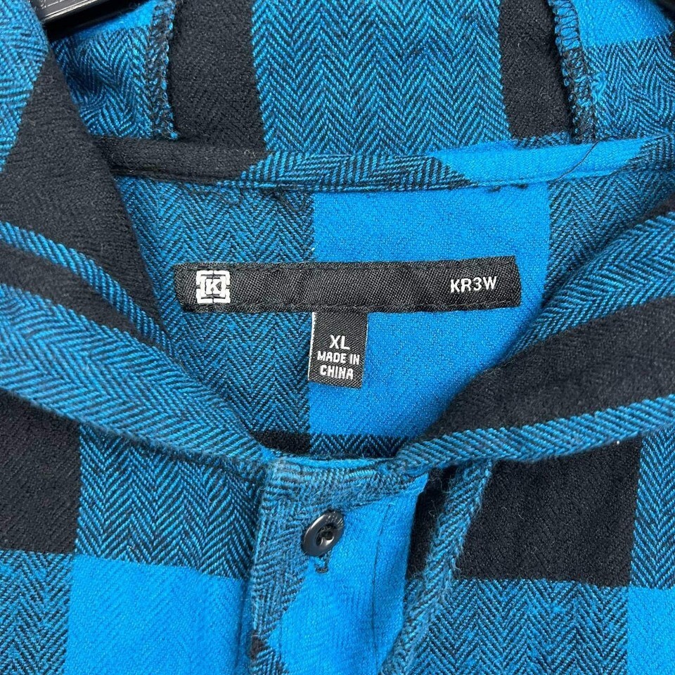 Kr3w Shirt Men Extra Large Blue Plaid Flannel Button Up Hooded Long Sleeve XL