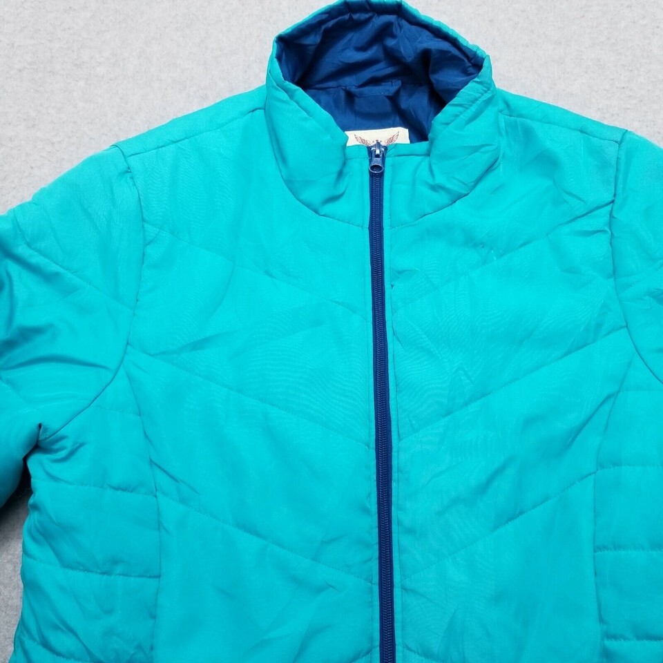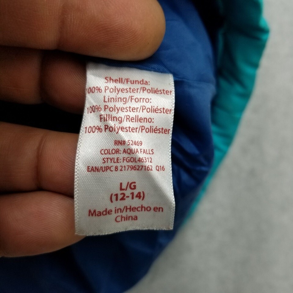 Faded Glory Puffer Jacket Youth Large Blue Full Zip Girls 12-14 Cyan