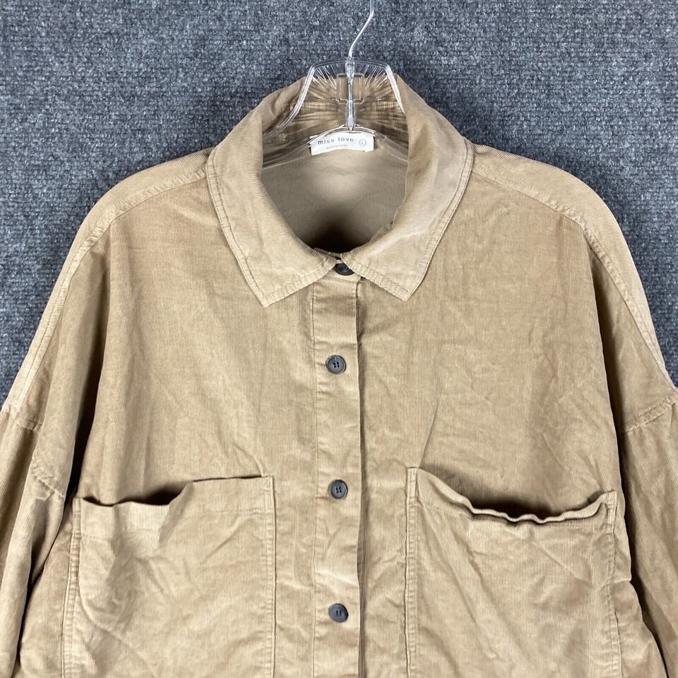 Miss Love Corduroy Shirt Women's Large Long Sleeve Tan 100% Cotton Adults L