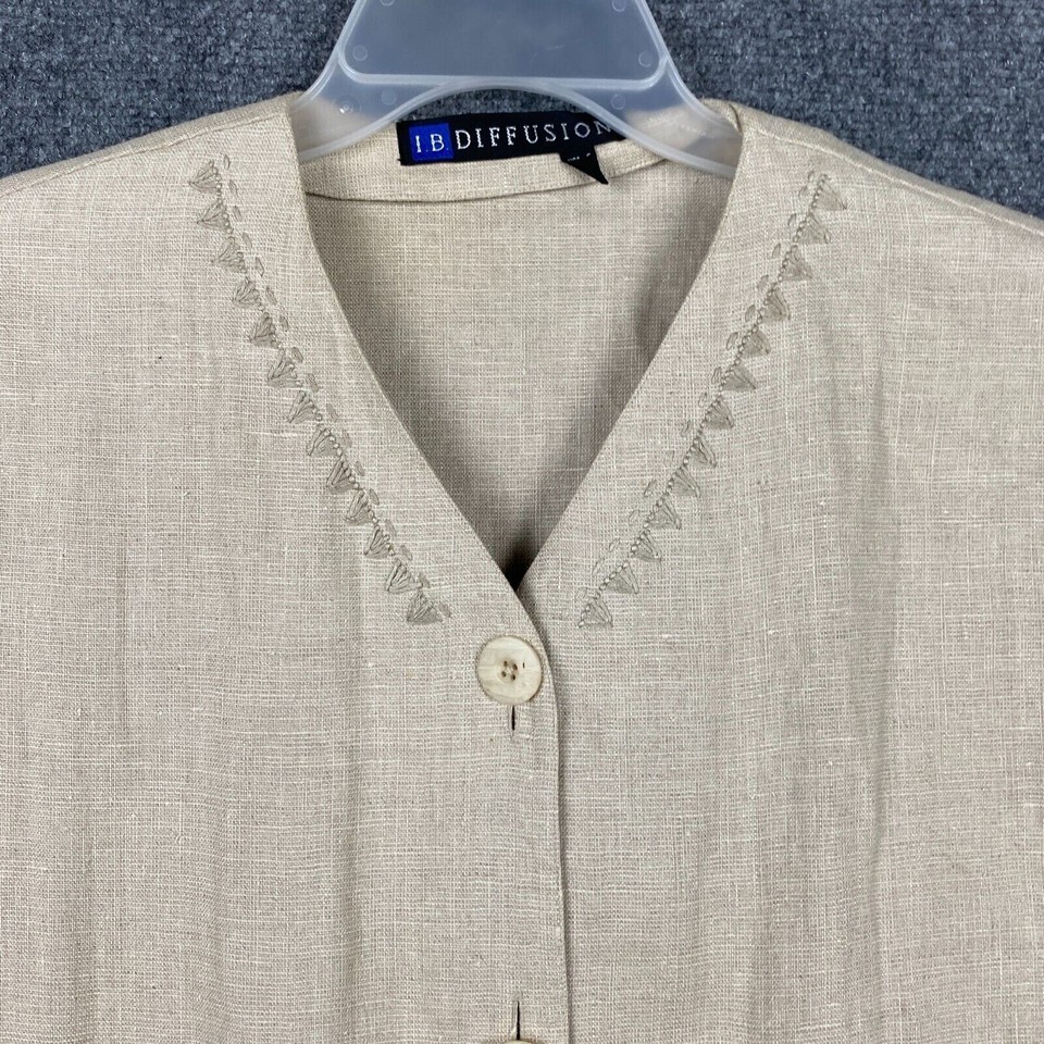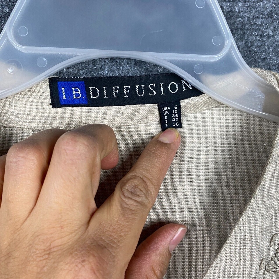 I.B. Diffusion Top Size 6 Button Up Short Sleeve Women's Beige Adults