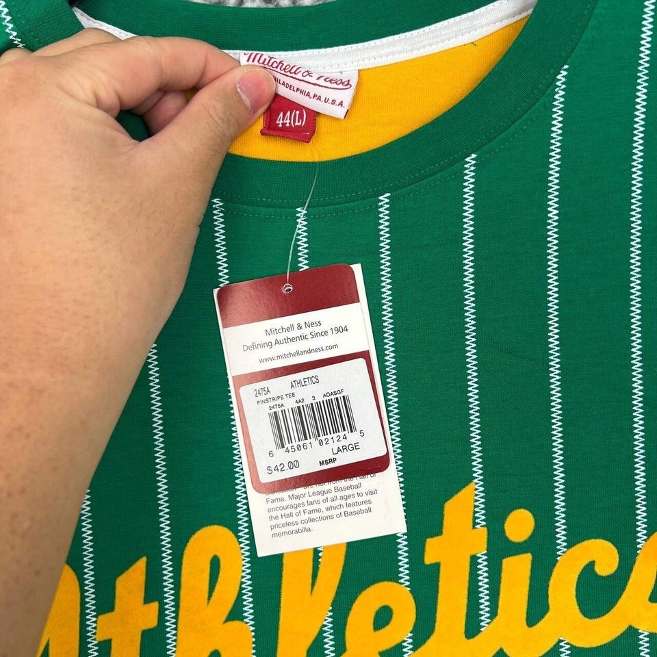 Oakland Athletics Shirt Men Green Large Pinstripes Mitchell & Ness Cotton New L