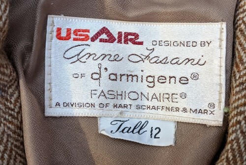 USAir USAirways Uniform Tweed Jacket Anne Fasani d'armigene Fashionaire 12 T