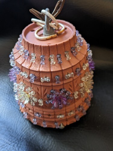 A vendre est un patio de camping-car a lumiere perlee multicolore Lawnware 235 suspendu souffle de 5,5 po en marron. La lumiere devra etre recablee. Blanc avec des perles rouges. Mesure environ. 5 1/2" de haut et 5 1/4" de large. Fabrique aux Etats-Unis. Les photos montrent l?article reel a vendre. J'en ai d'autres disponibles que je n'ai pas repertories.