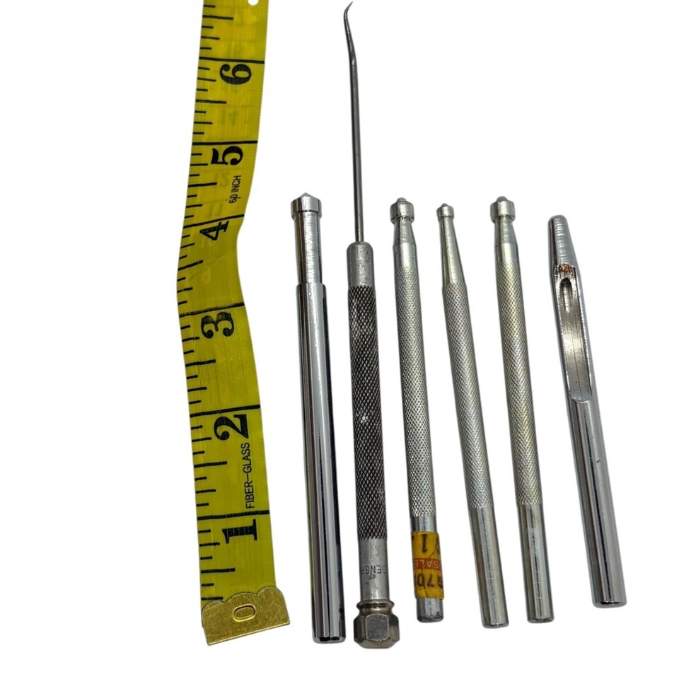 Durable tools designed for precision leatherworking, featuring textured grips for control and various tips for versatile crafting applications.