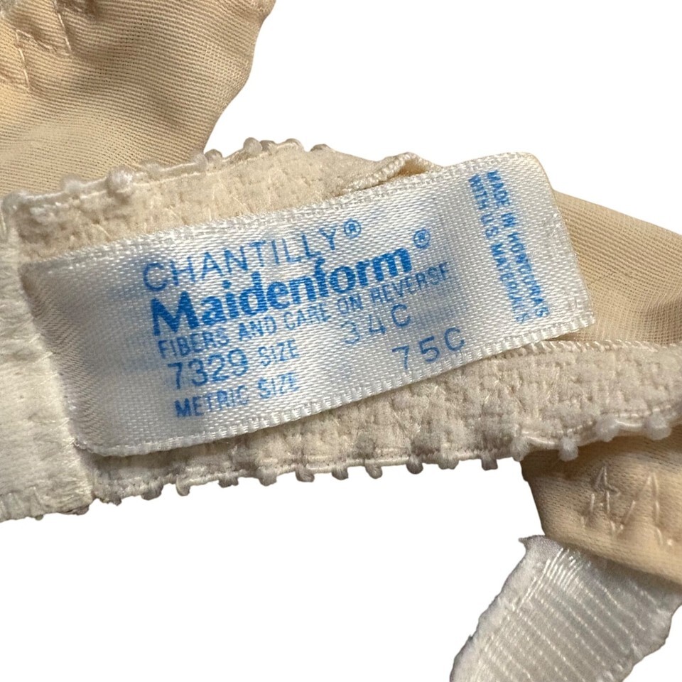 Vintage Chantilly By Maidenform Lace & Satin Underwire Bra 34C Beige
