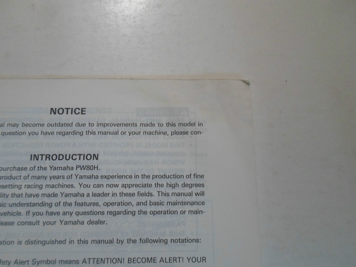 MANUALE DI SERVIZIO PROPRIETARI YAMAHA PW80H DEL 1996 DANNEGGIATO DALL'ACQUA