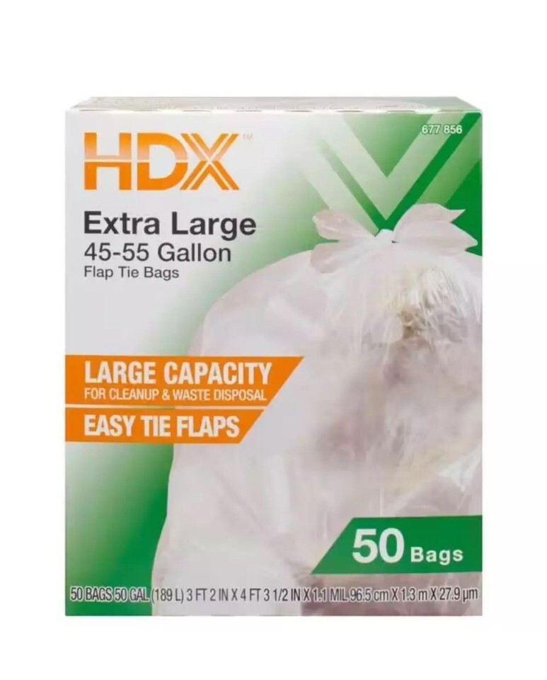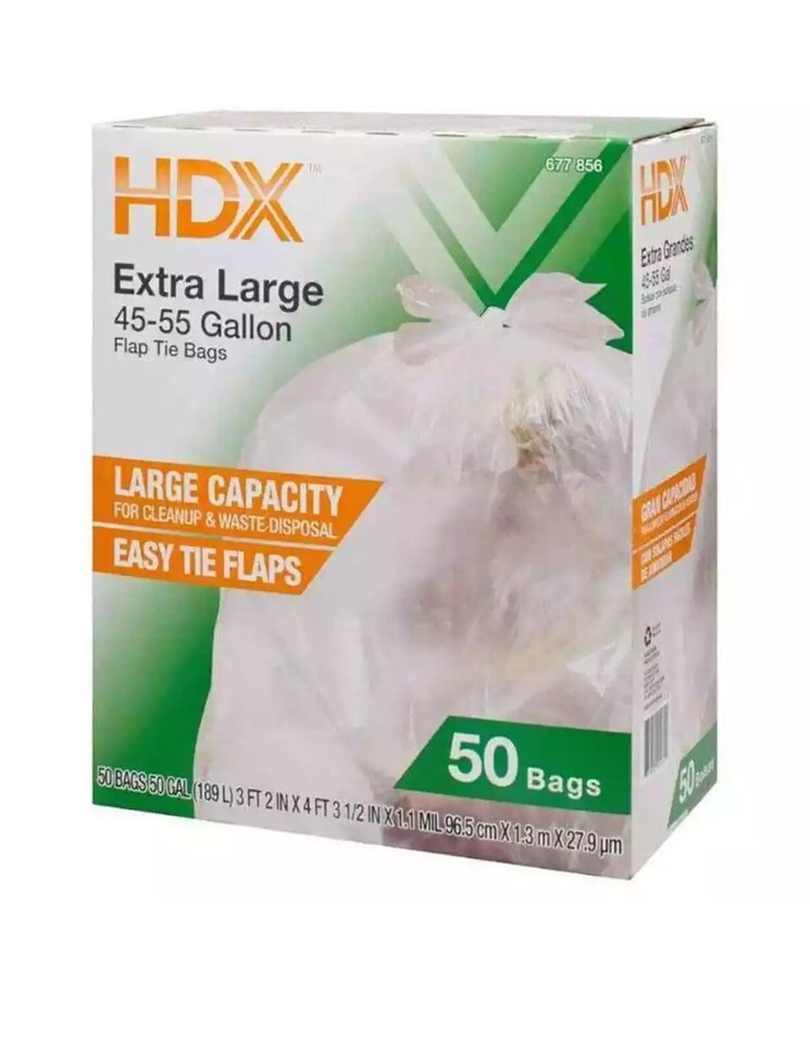 HDX 50 Gal. Trash Bags Disposable Plastic Clear Extra Large Heavy Duty 50 Count