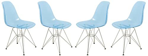 LeisureMod Acrylic Dining Chairs with Chrome Eiffel Base ย Set of 4, Curved Back