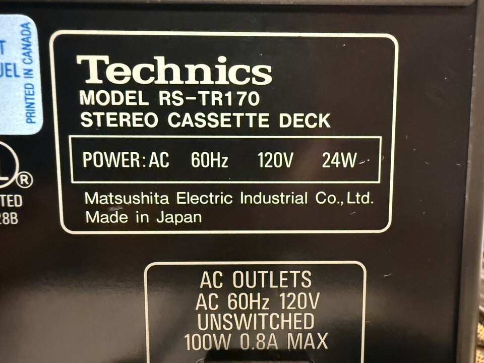 Technics RS-TR170 Stereo Cassette Dual Deck Auto Reverse