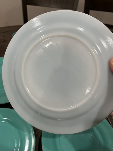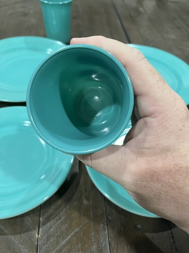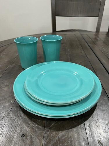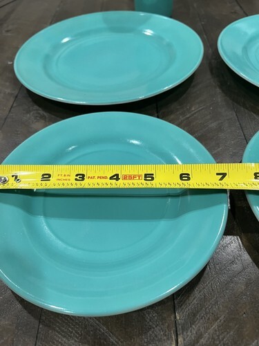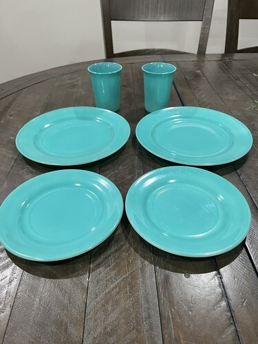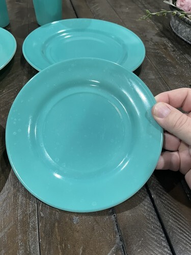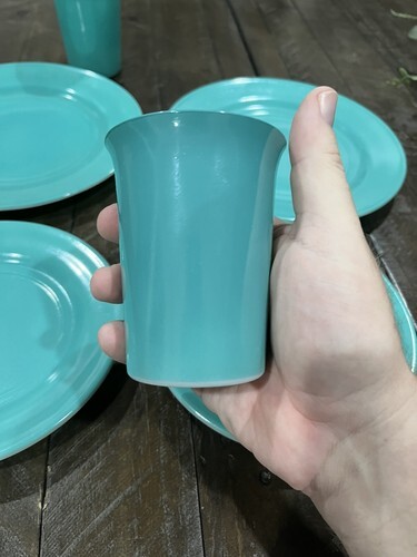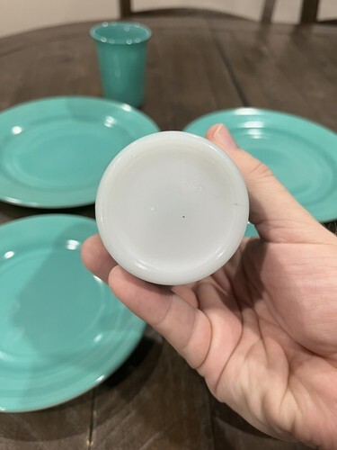 Hazel Atlas Ovide Aqua Turquoise Platonite Dinner Dessert Plate Tumbler Set Of 2