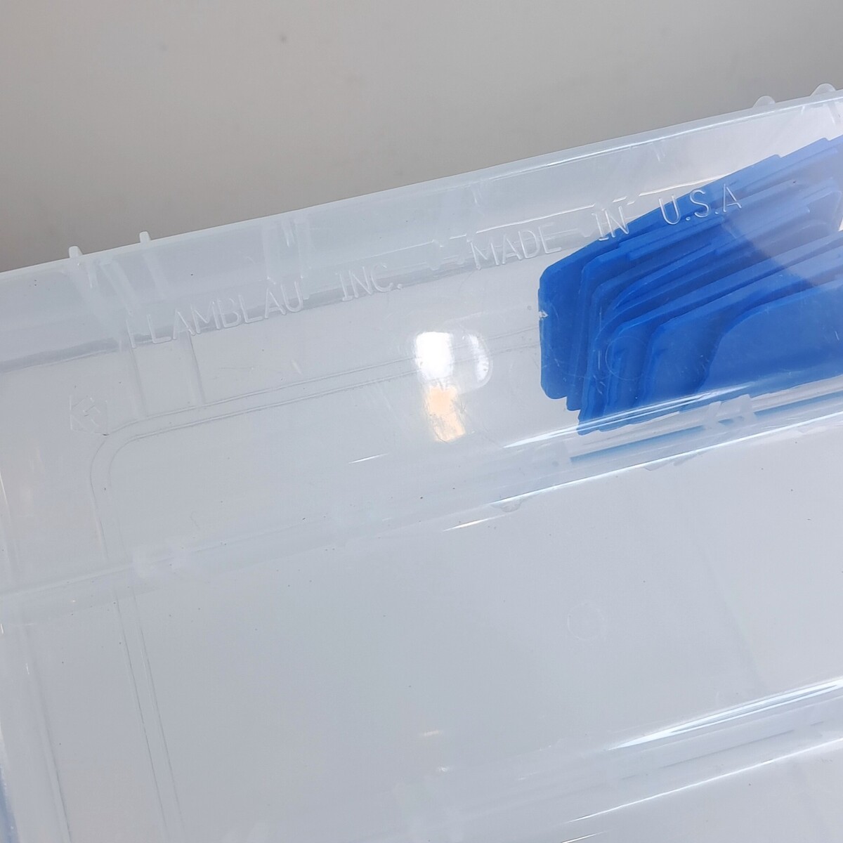 Includes 10 blue dividers. Scratches/scuffs as shown. See pics for measurements.