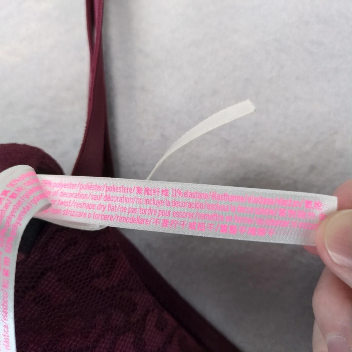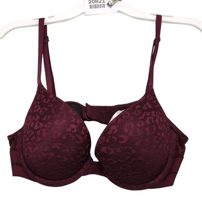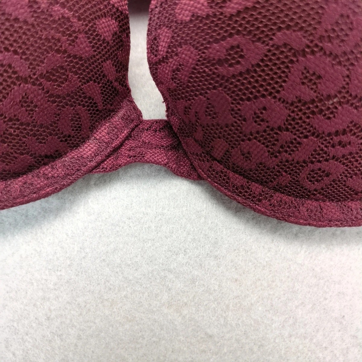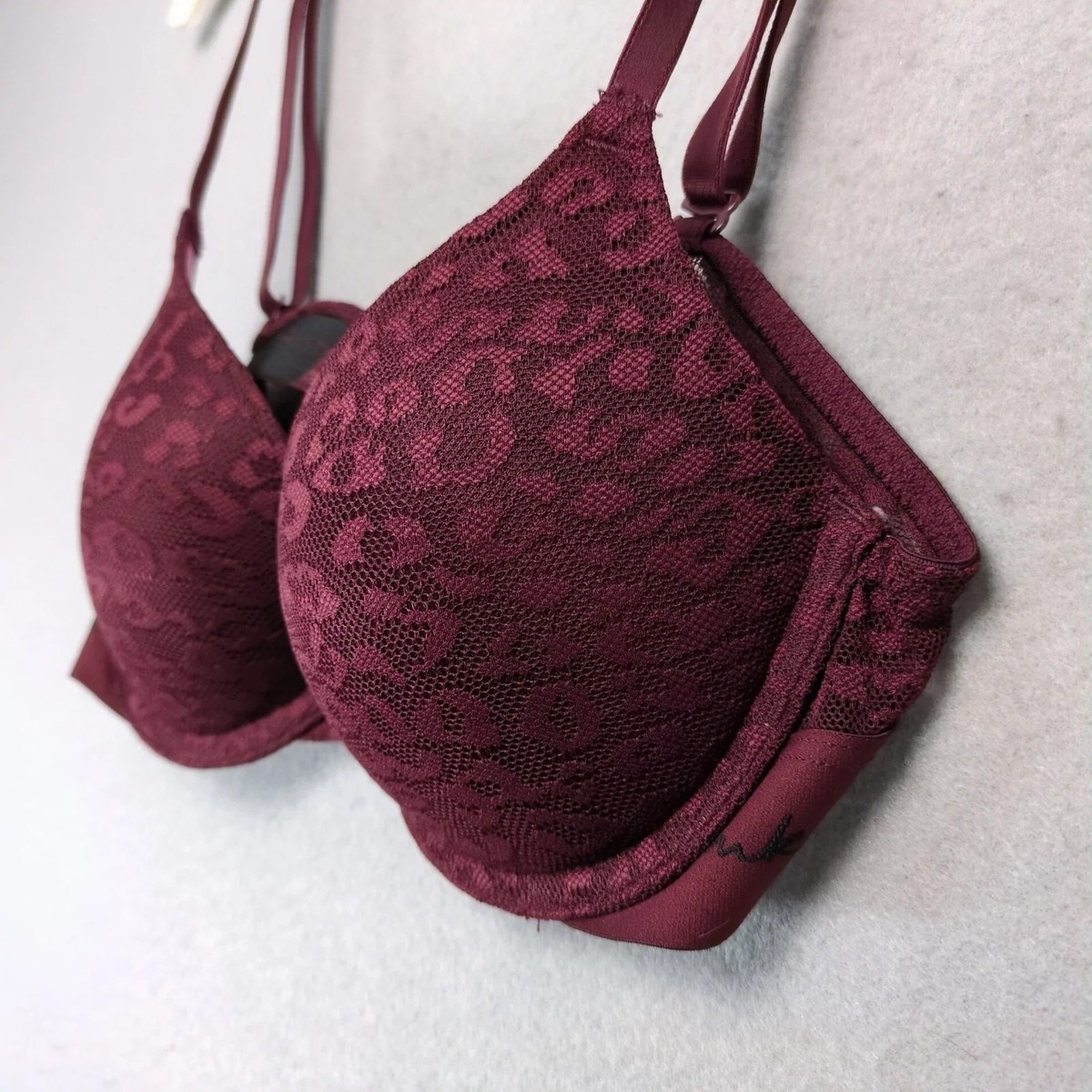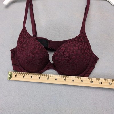 Pink Victoria's Secret Wear Everywhere Push-Up Bra 32B Burgundy Lace Underwire