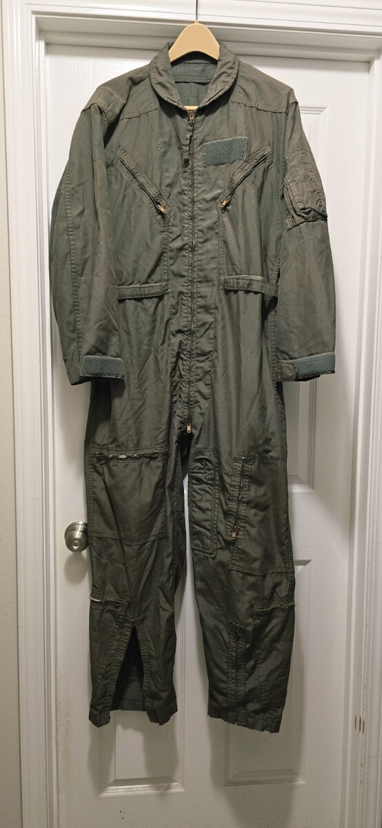 Vintage Flight Suit Coveralls Flyers Men's L Green CWU-27/P US Military Jumpsuit - No ankle zippers.