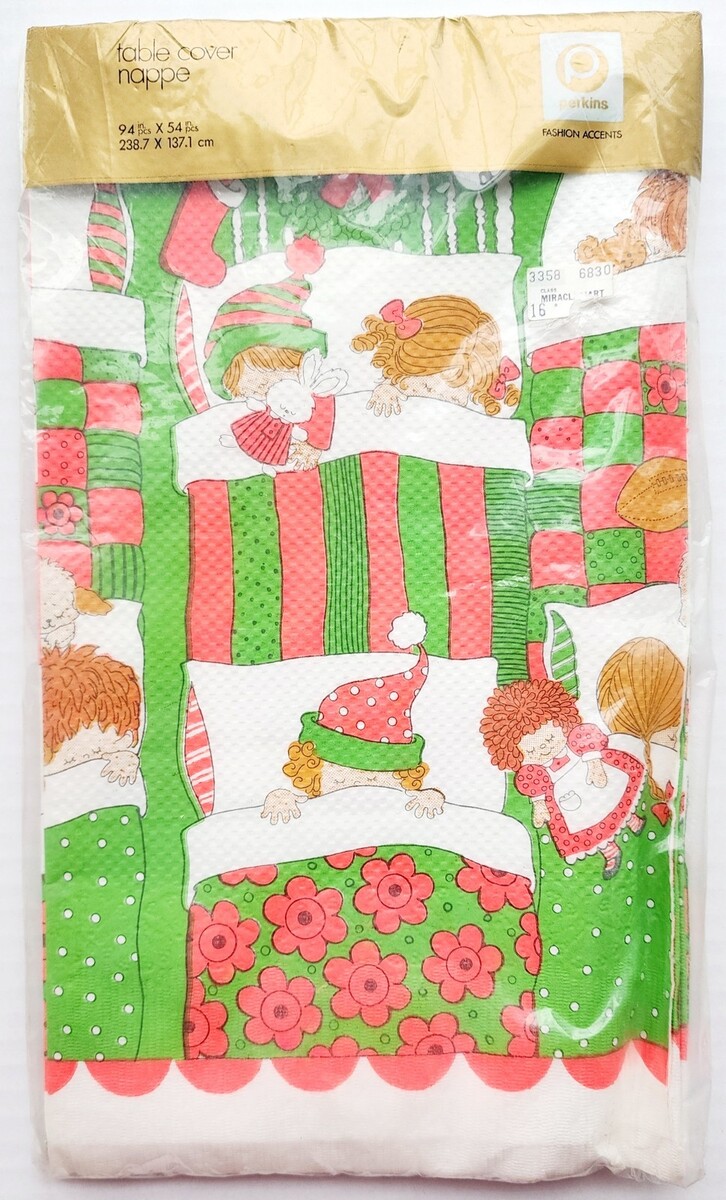 Vintage Perkins Table Cover NOS New Christmas Holiday Theme 94 x 54" E80