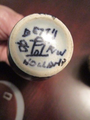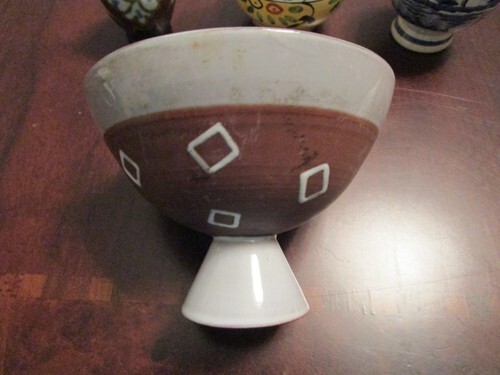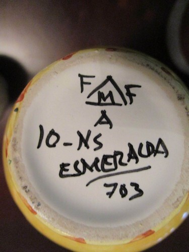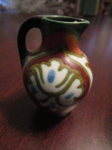 POTTERY HOLLAND AND PORTUGAL 5 PCS SALE 10 $ EACH FOOTED BOWL MARKED HOLLAND 4 X 4, BLUE DELFT SMALL JAR 4", MULTICOLOR VASE FROM PORTUGAL SIGNED ESMERALDA 4", SMALL GOUDA PITCHER 3" , VERY GOOD CONDITION, SOME LIGHT SURFACE SCRATCHES COMMENSURATE WITH AGE [REDSCHUMANNBSKT]