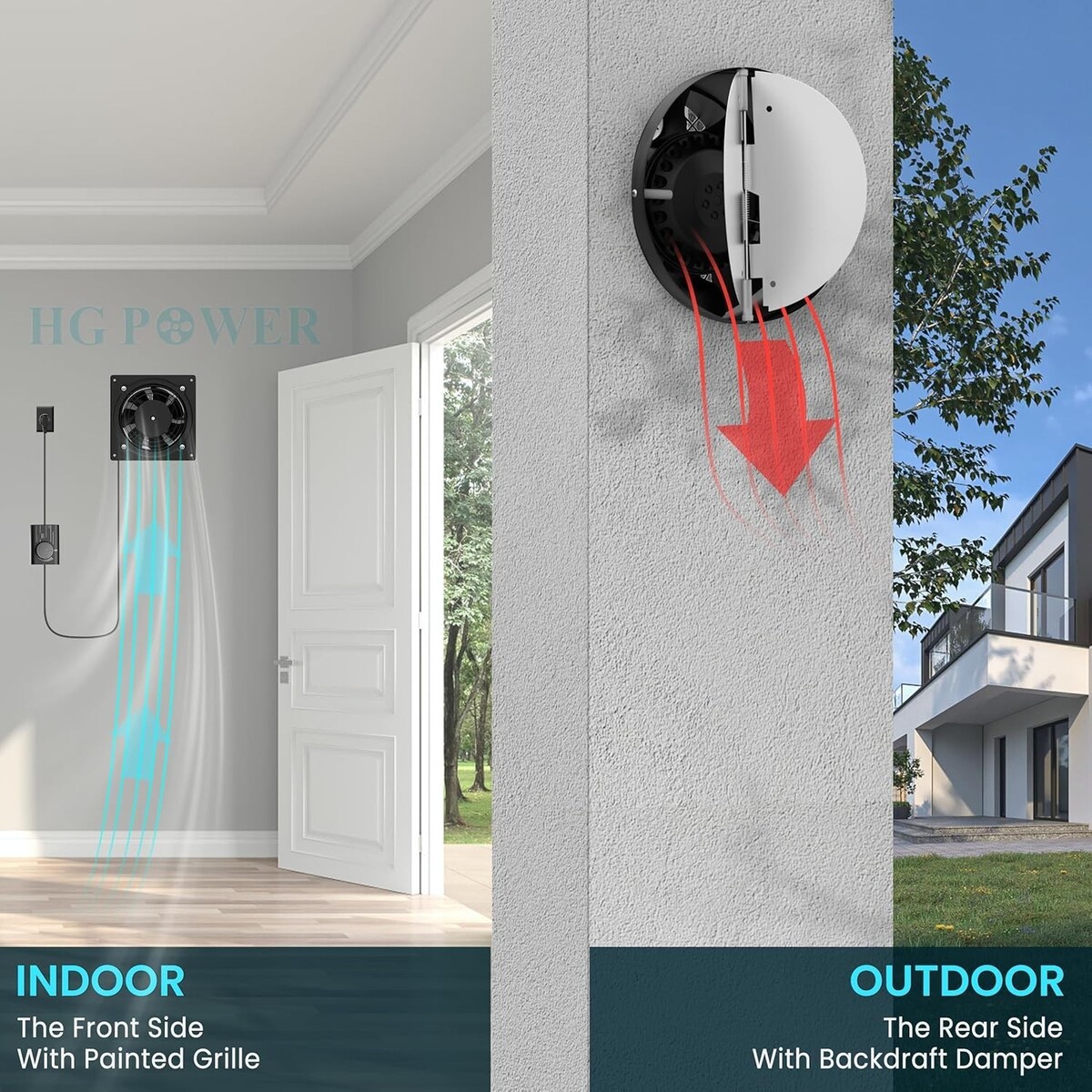 HG Power 6 Inch Exhaust Fan with Speed Controller, 308CFM Wall Exhaust Fanfor Kitchen, Bathroom, Metal Extractor Fan for Pet Room, Smoking Room, Attic, Garage, Window Ventilation