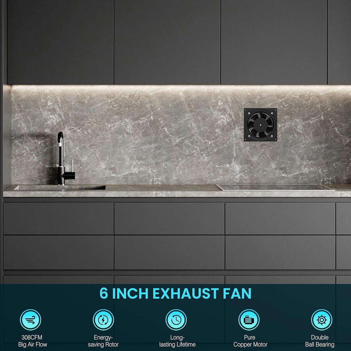 Enhanced Airflow: With a large airflow capacity of 308 CFM, this 6 inch exhaust fan effectively moves air, creating a comfortable environment