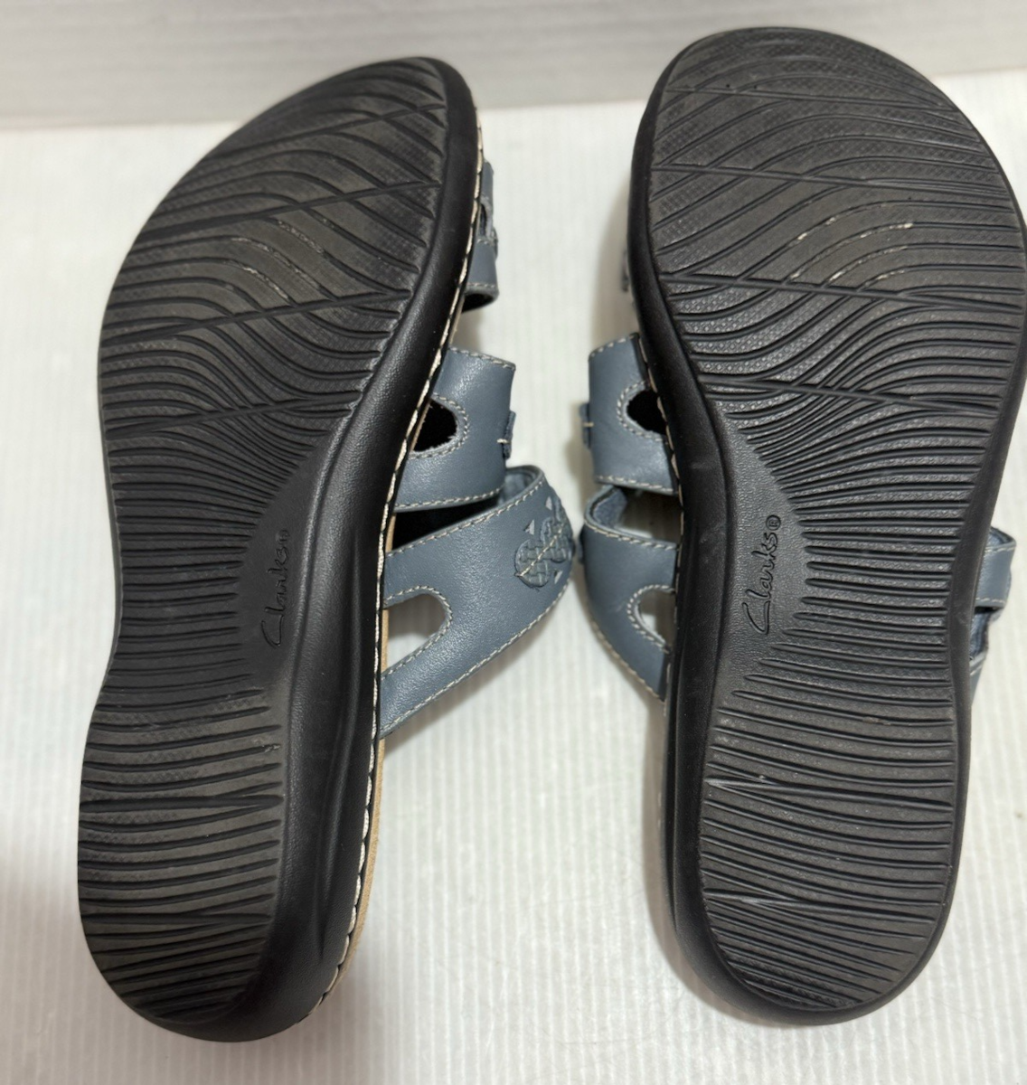 Clarks Collection Leather Slide Sandals Laurieann Cove Blue Gray Size 7.5 wide