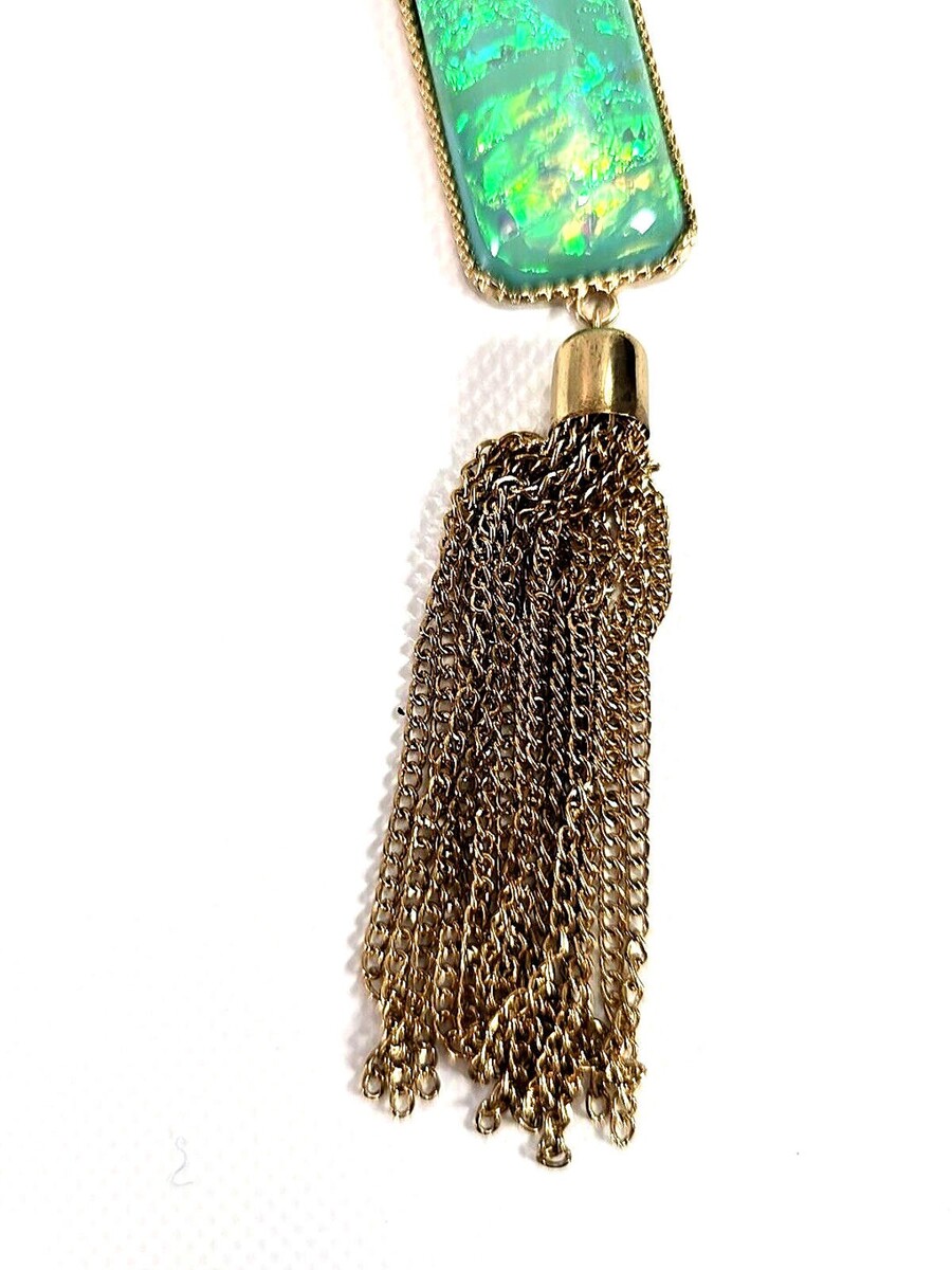 Vintage Tassel Necklace Faux Opal Pendant and 49 similar items