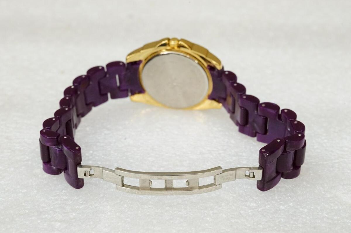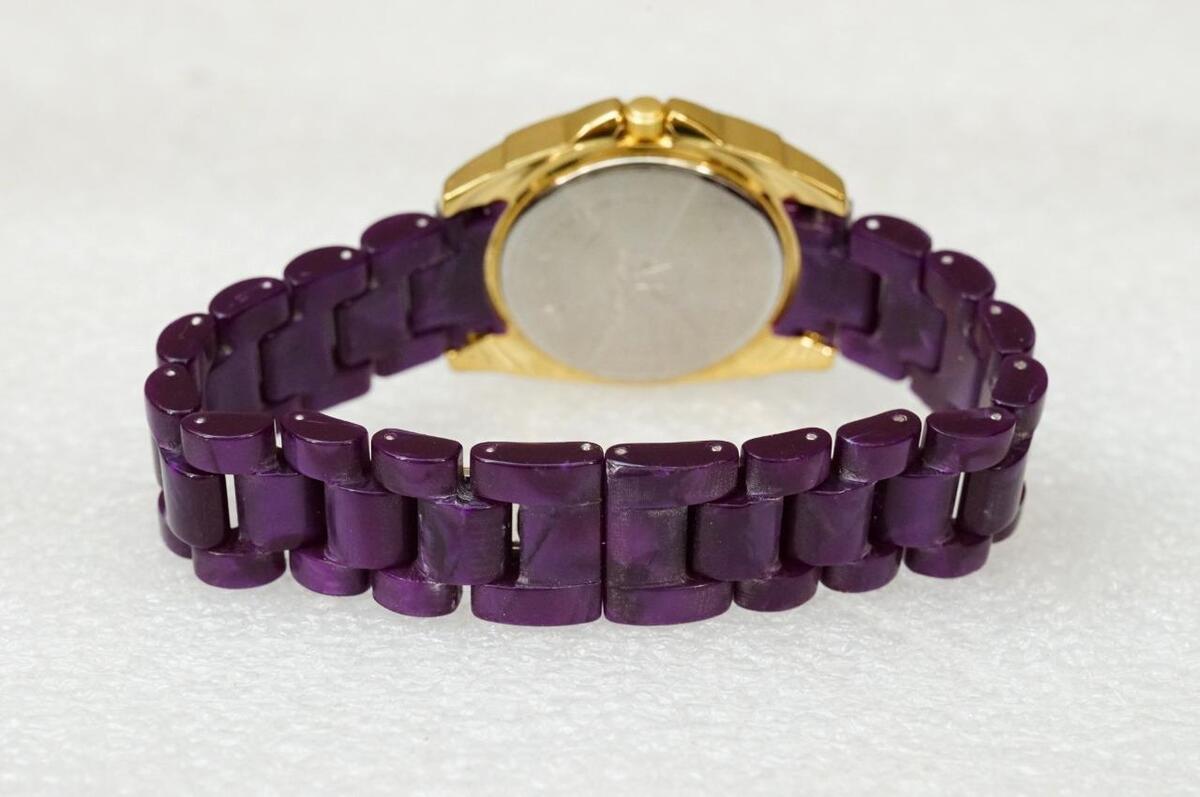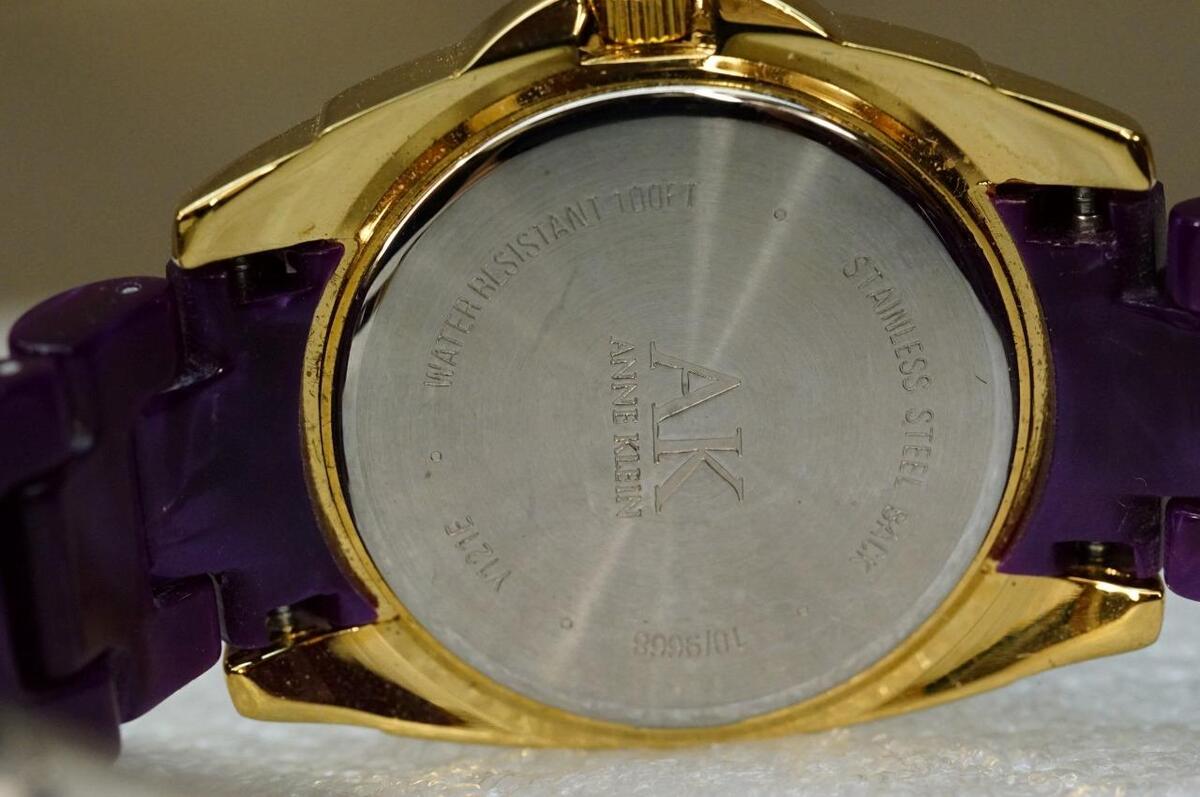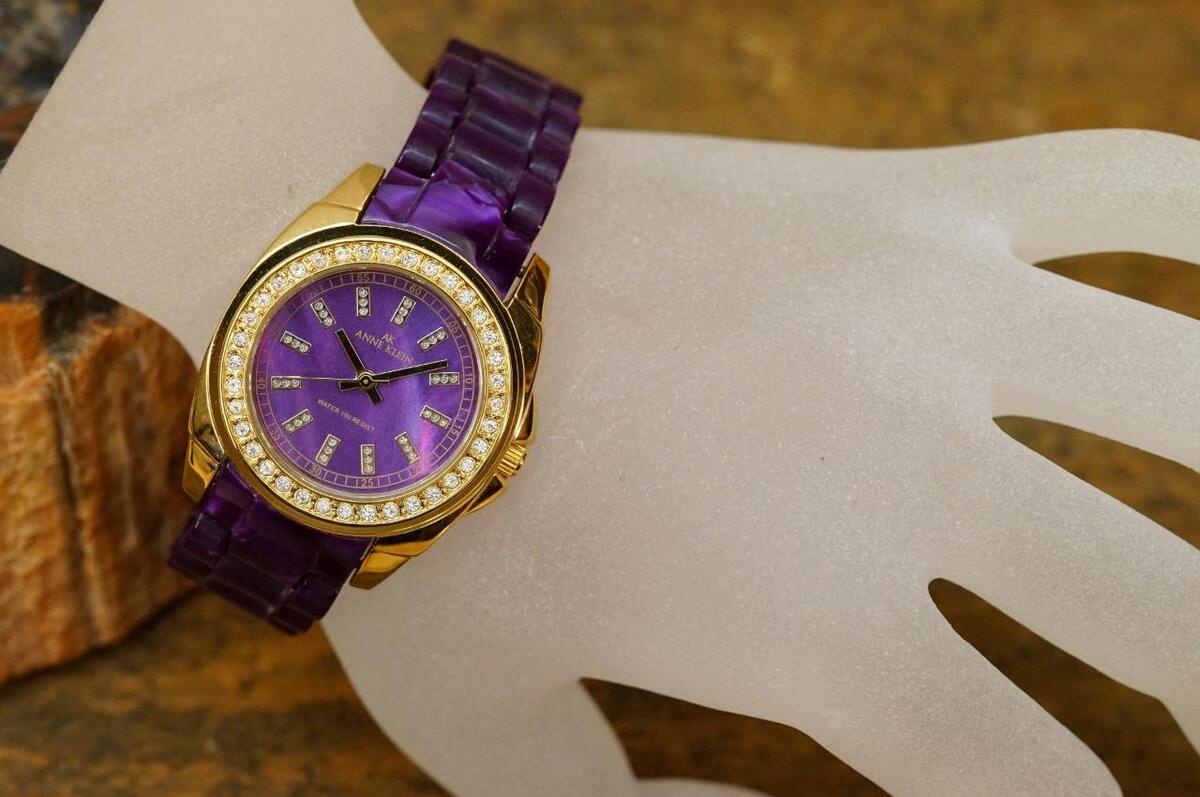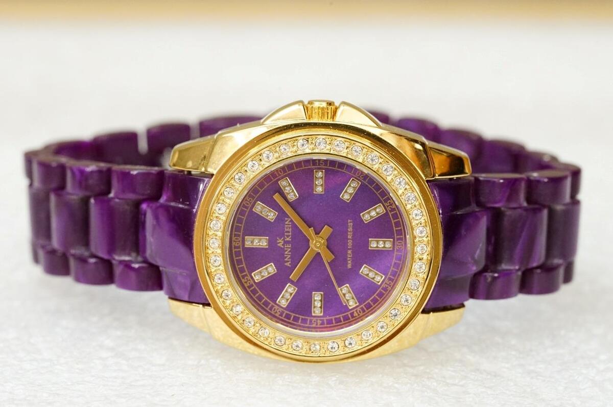 Anne Klein Quartz Watch Rhinestone Costume Jewelry Purple Enamel Metal Band - ladies, measures 1-3/16" across. No smoke or pet odors.