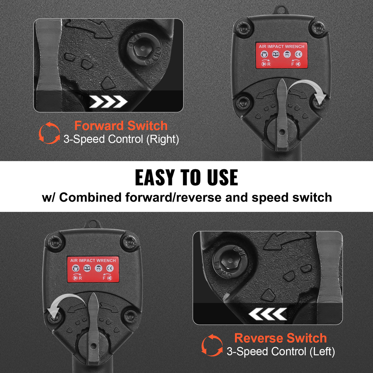 High Performance: VEVOR air impact wrench features twin hammer impact mechanism, delivers up to 690 foot-pounds of nut busting torque, tackles light duty assembly and disassembly applications, auto repairs and maintenance with exceptional performance and control.