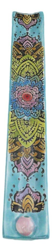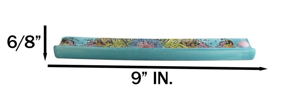 ? This Colorful Mandala Flowers Incense Burner measures 0.75" Tall, 9" Long and 1.25" Deep approximately. It weighs about 7 ounces.