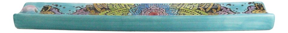 Ceramic Turquoise Blue Mandala Flowers Life Beauty and Renewal Incense Holder