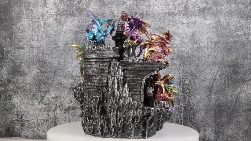 ? These Multicolored Miniature Dragon figurines and Castle Display Stand set are made of polyresin, hand painted and polished individually. They are sold as a set as shown in the pictures.