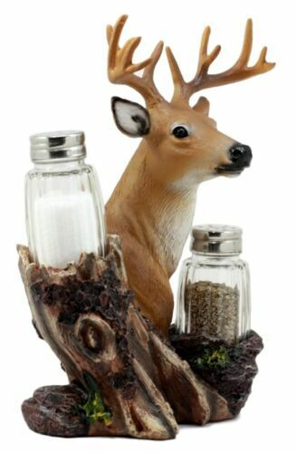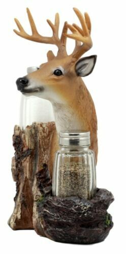 ? This 12 Point Buck Salt Pepper Shakers Holder figurine is made of cold cast resin, hand painted and polished. Color tone may vary.