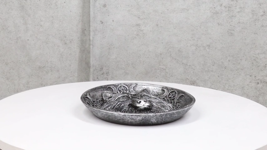 ? Embrace the spiritual energy and the wild essence of nature with our Gray Wolf Round Incense Holder Dish featuring Celtic Knotworks and Triple Moon Pentagram Symbols. This intricately designed holder is a captivating fusion of mysticism and the untamed spirit of the wolf. The gray wolf, surrounded by Celtic knotworks and the triple moon pentagram symbols, creates a powerful and visually stunning representation.