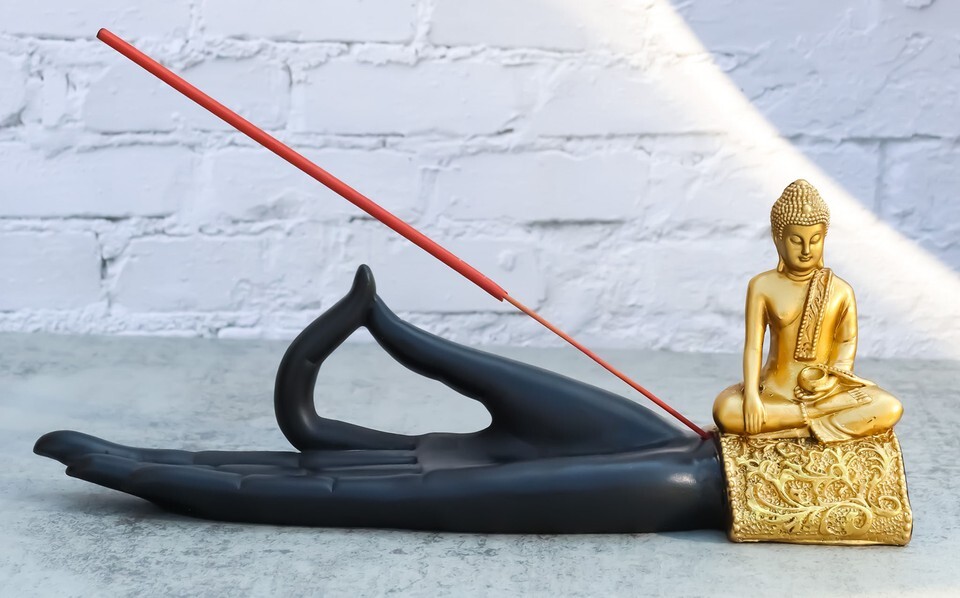 Feng Shui Yoga Shunya Mudra Golden Buddha Palm Hand Incense Burner Figurine