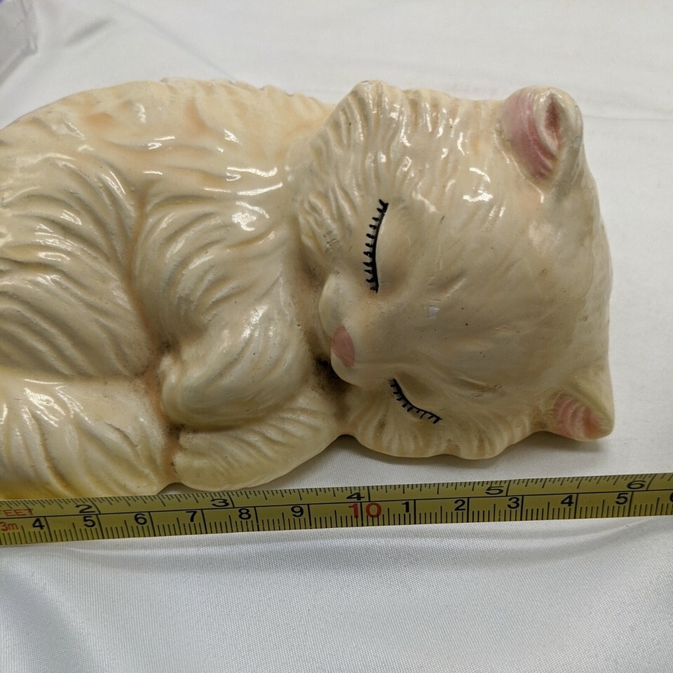 6" Vintage Cute Adorable Sleeping Ceramic Kitten Cat With Felt On Bottom. Combined Shipping (for USA Customers Only)