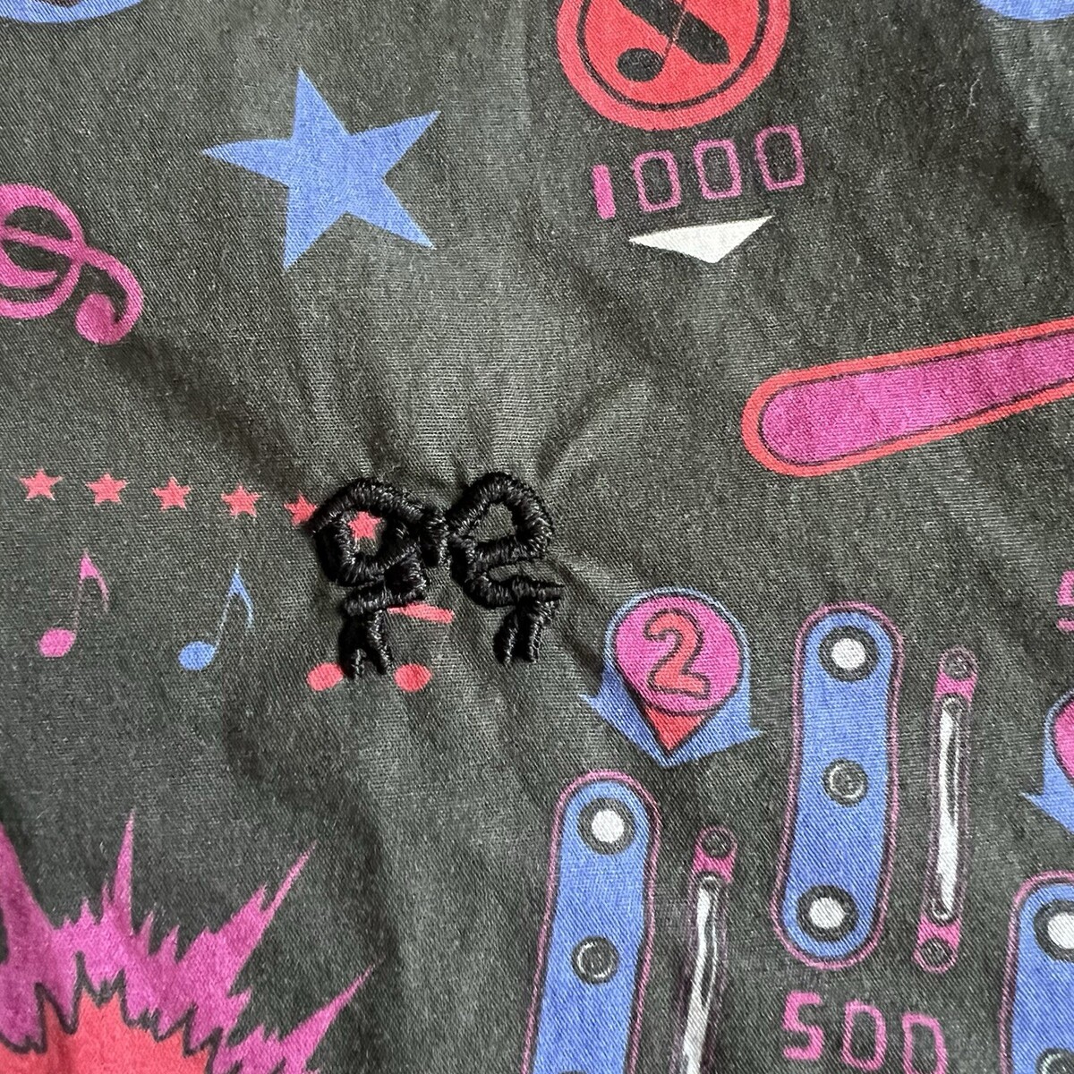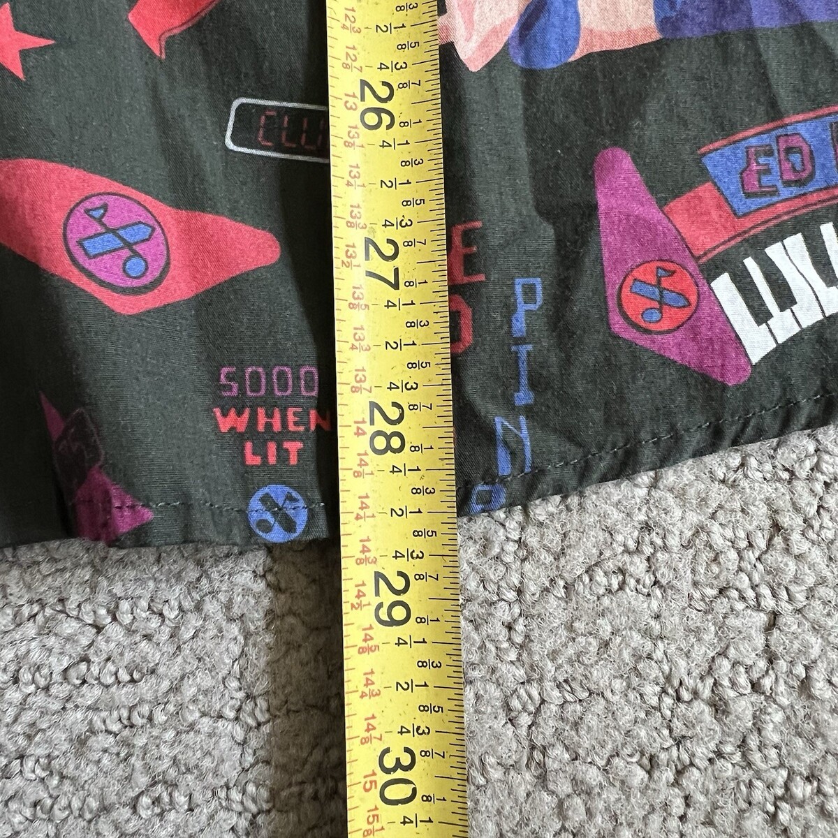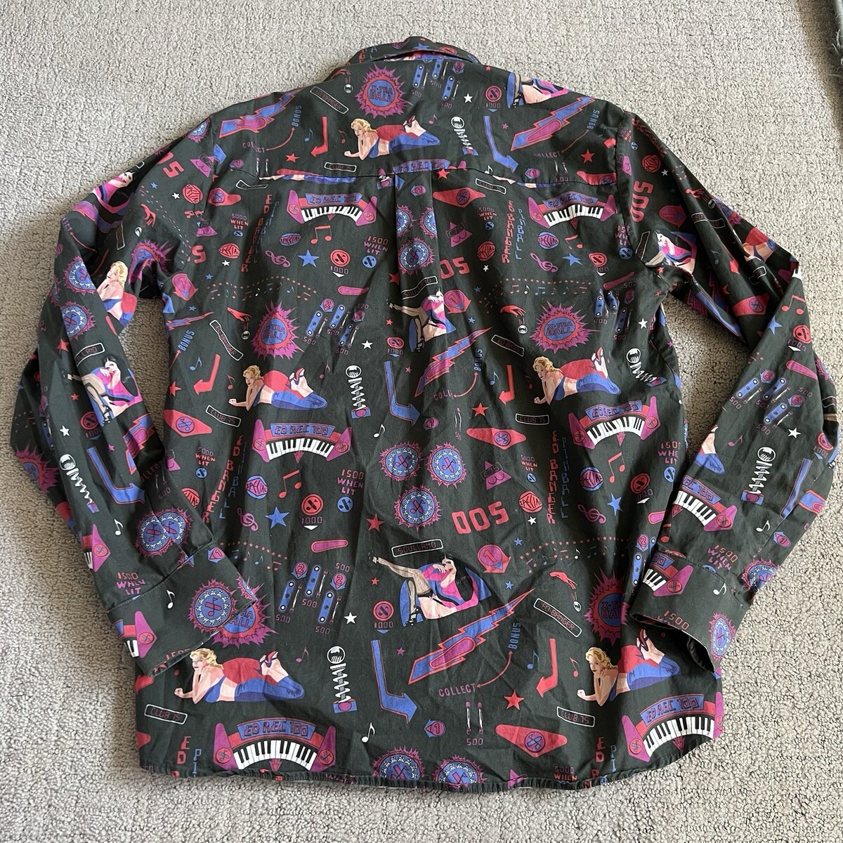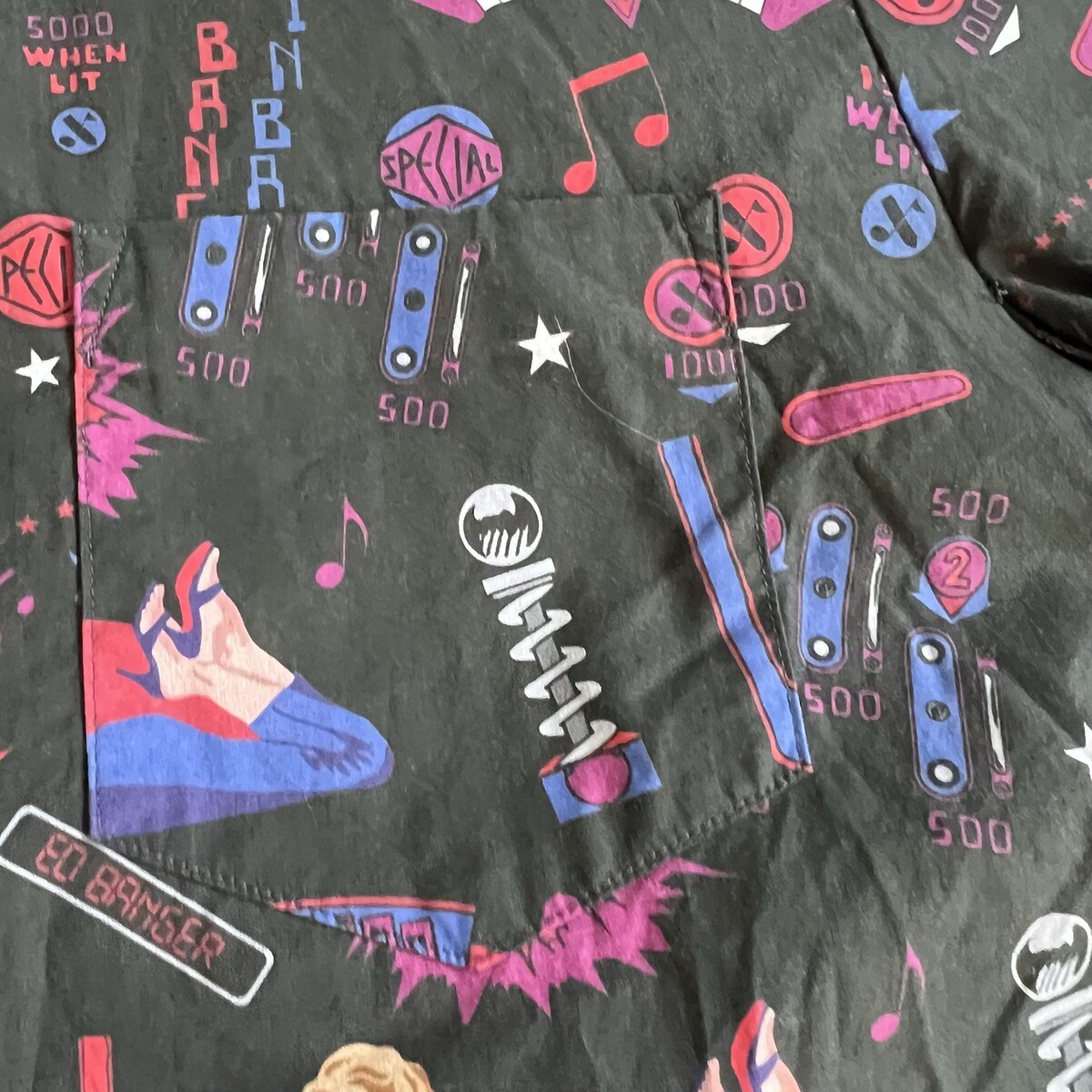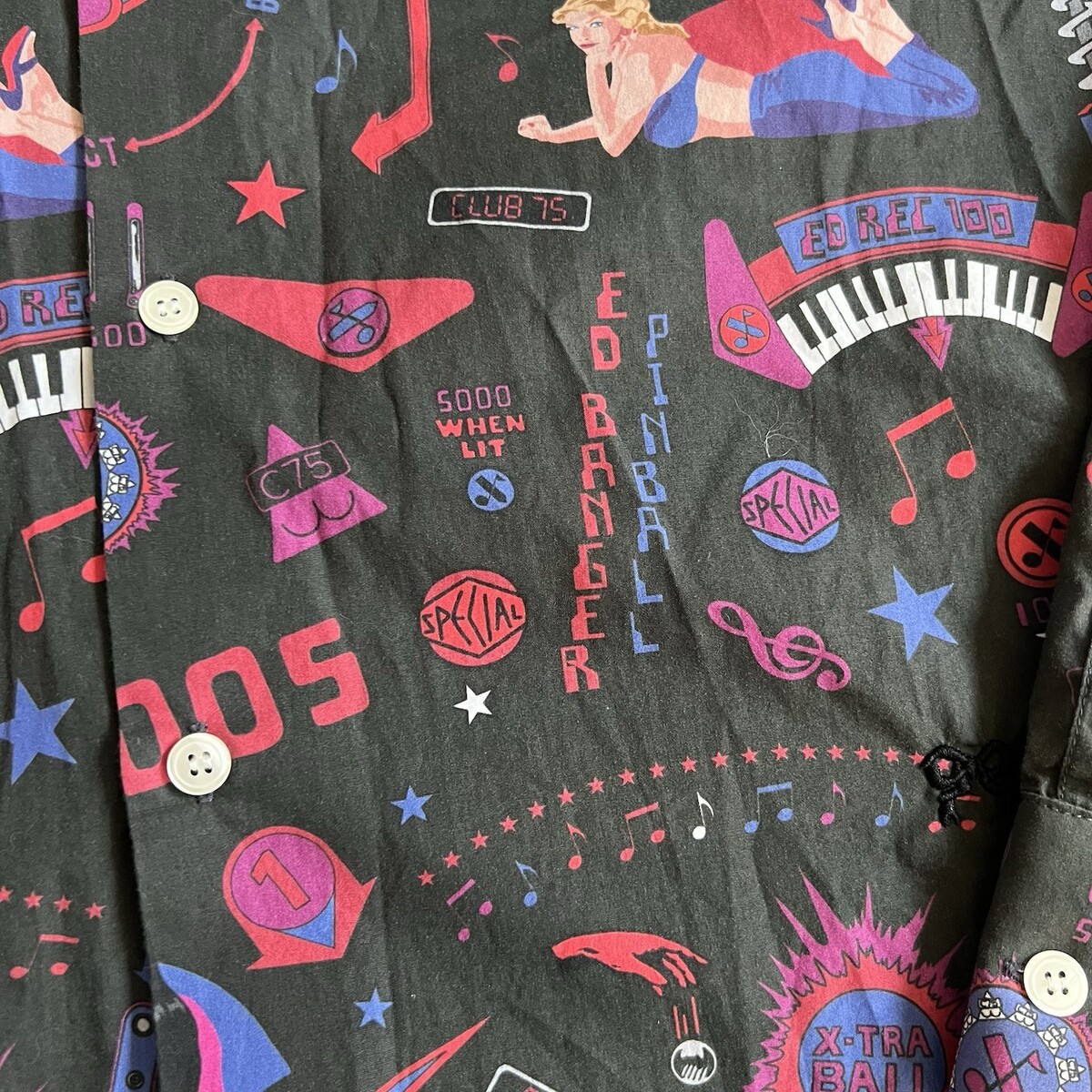 Good used condition, rare allover print button up, featuring Ed banger pinball graphics. Please use zoom function to see complete details
