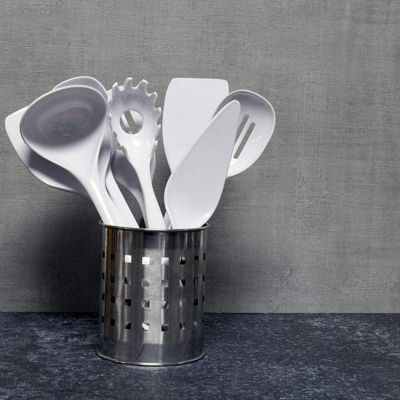 Chef Craft's line of Melamine Kitchen Utensils are both simple and sleek. They come in either black or white and do not scratch nonstick pans. The handle shape and lightweight design makes them easy to use over long periods of time. This turner is dishwasher safe, so it is extremely convenient to clean up after using.