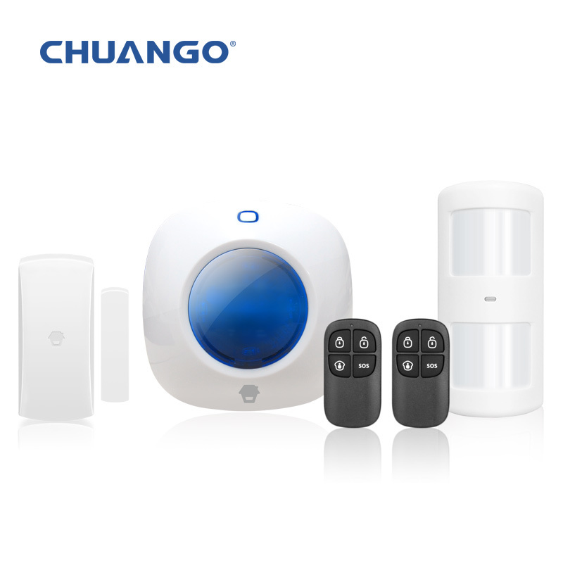 This package is with a siren + two remote controllers + 1 pir sensor + 1 door sensor;