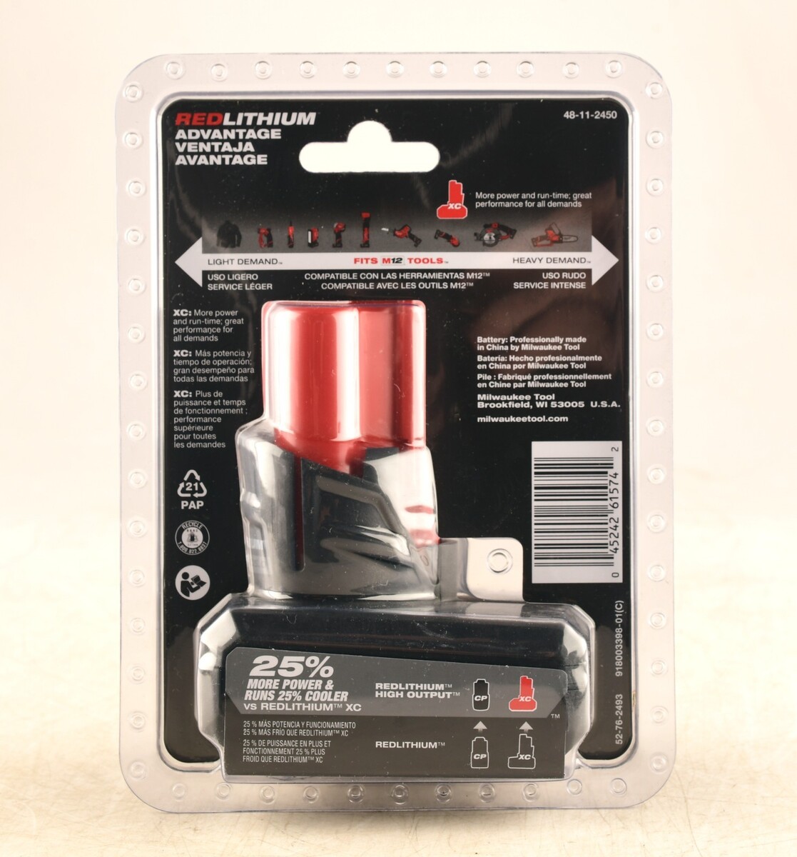 Milwaukee 48-11-2450 M12 12V REDLITHIUM HIGH OUTPUT XC5.0 Battery