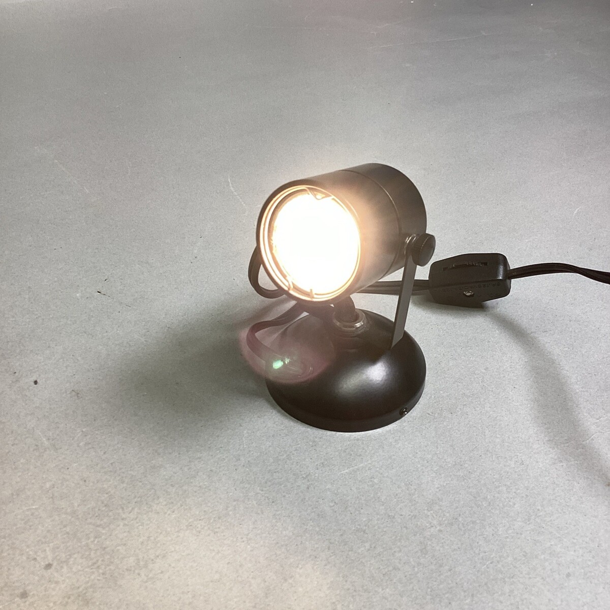 This has a built in feature that if the light is picked up or falls over, the light will turn off until it?s placed back down. This is a nice small spot light that works very well. The angle is adjustable. This measures 4?Hx2.5?Lx2.5?W