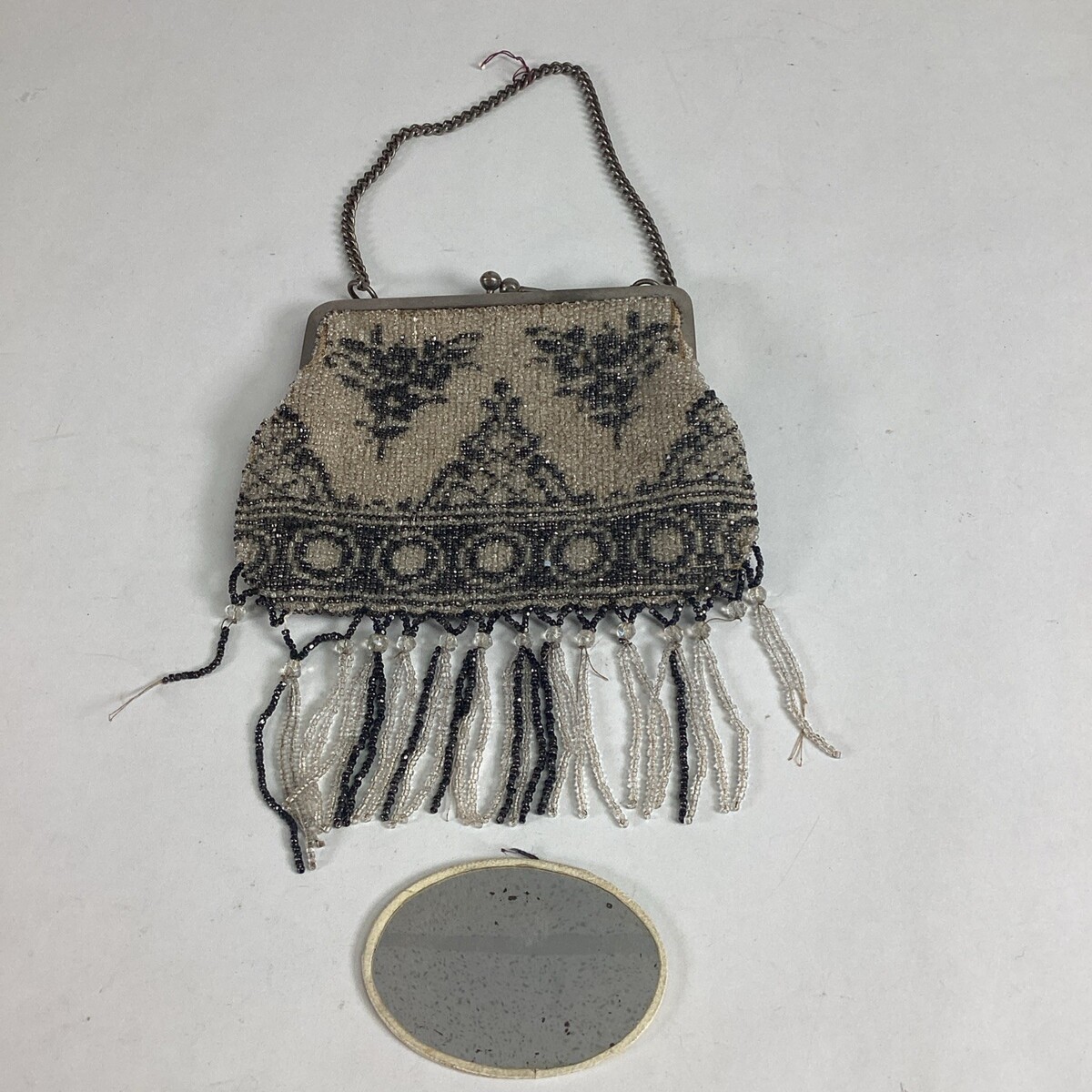 Vintage Beaded Evening Bag With Fringe & Mirror