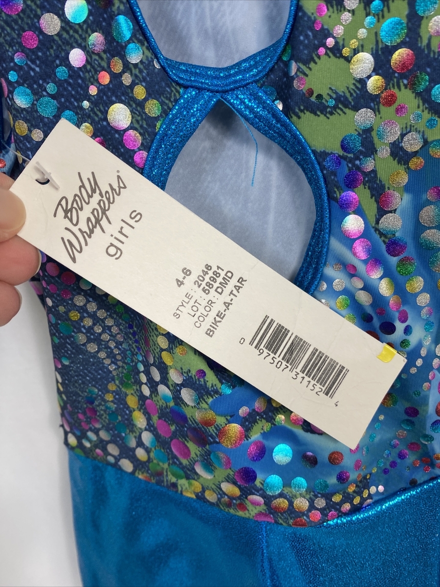 Body Wrappers Gymnastics Keyhold Biketard Blue Multi Girl's Size 4-6 NEW