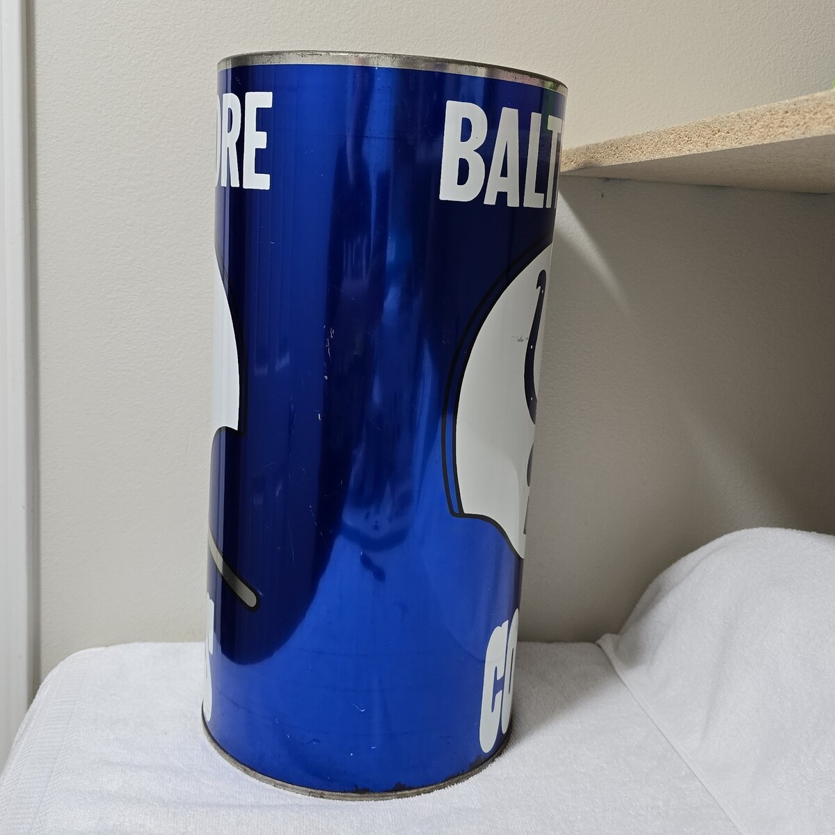 Vintage 1970s Industries, Inc. NFL Baltimore Colts Round Metal Trash Can - Blue with White Helmet - Made in USA.